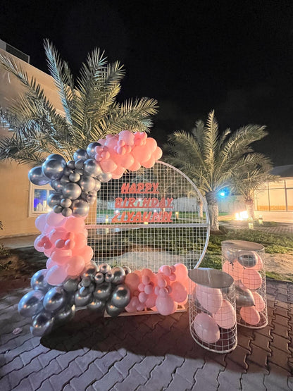 Circular mesh backdrop for all kinds of celebration. Can be rent for 24 hours, 2 hour set up time.
