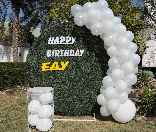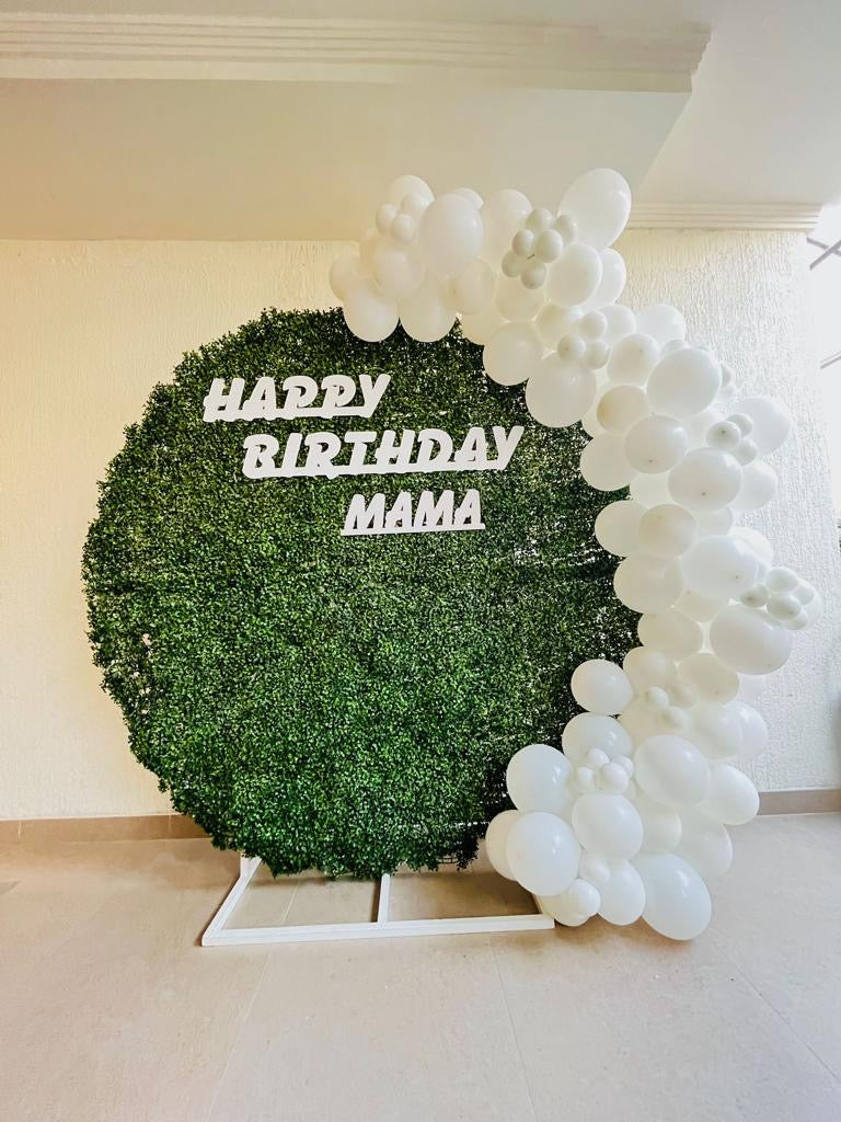 Circular mesh backdrop with a touch of nature. Can be rent for 24 hours, 2 hour set up time.